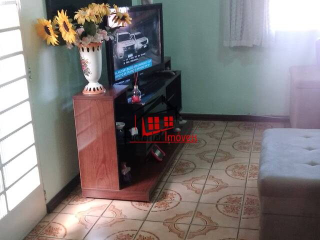 Casa com três quartos, sala, cozinha, dois banhos sociais, varanda, área de serviço e vagas para quatro veículos.